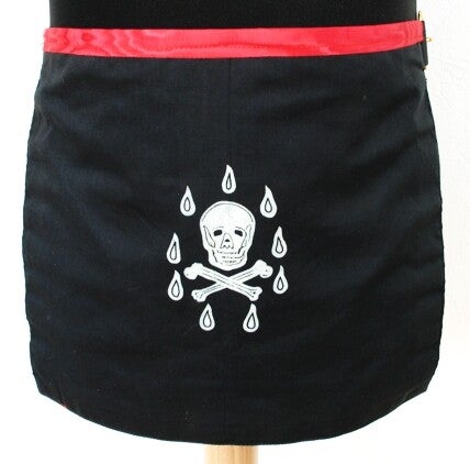 - REAA Tablier de maître - satin simple - noir crâne 9 larmes, 39 cm x 32 cm